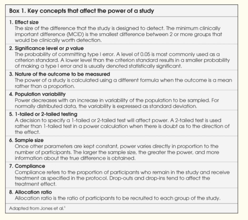 🔸It is important to remember that the point of powering a study is not to find a statistically significant difference between groups, but rather to find clinically important or relevant differences.