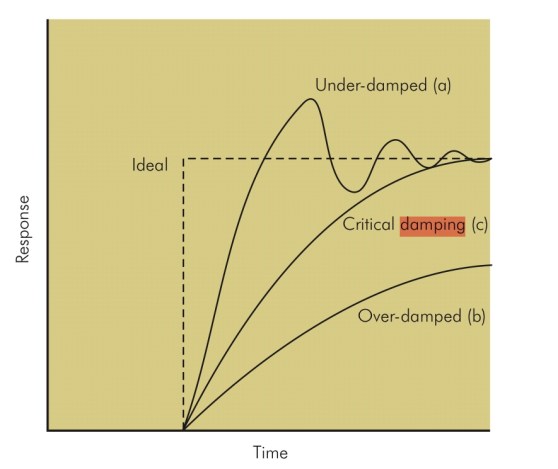 - Over-damped – defined as damping greater than critical. The output here could potentially change so slowly that it never reaches the true value. In a dynamic system, the response time may be too slow for the system to be useful.