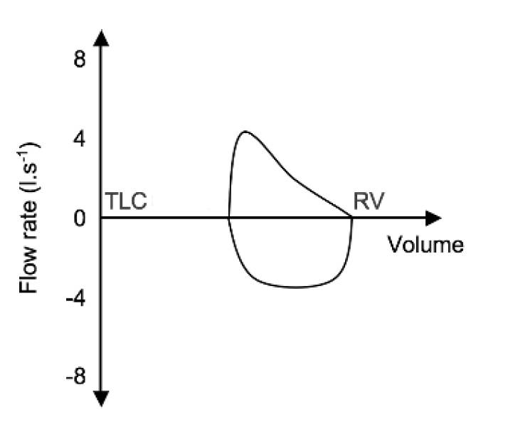 • Due to gas trapping, the RV (and TLC) is increased. The inspiratory flow rates are only slightly reduced