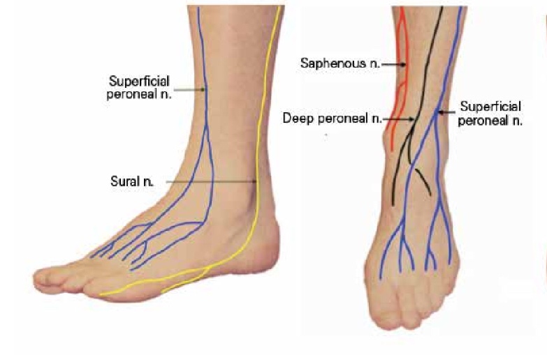 Turn the needle towards the lateral malleolus and inject 5ml LA in a subcutaneous band between the lateral malleolus and the anterior border of the tibia. This should reach all the branches of this nerve.